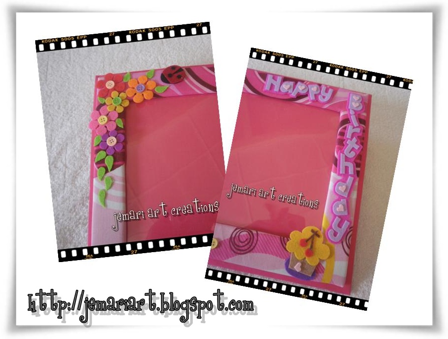 Dihiasi dengan kuntuman bunga felt & ladybird ... tak lupa cup cake tuk buffday .... Baru jer dpt sms yg empunyer frame ni suker sangat.. terima kasih sekali lagi....
